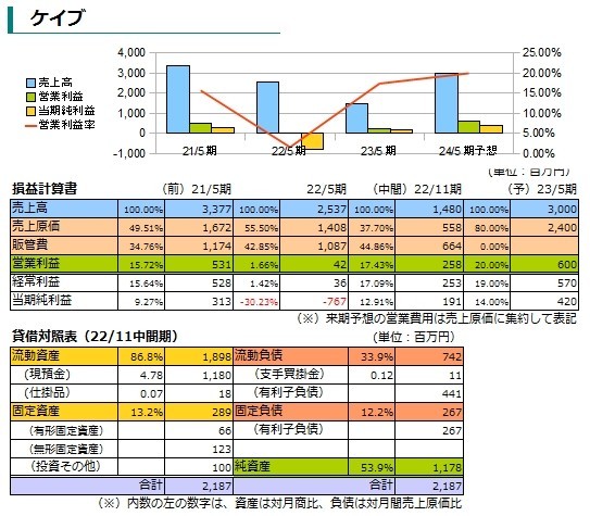 前期にネトゲの減損損失と直販事業の廃止損失で大きな特別損失を計上して赤字となっていますが、今期は例年程度の水準に戻して着ました。売上・利益の殆どがモバイルとオンライン事業なのは承知しておりますので、これからも細々とで構わないのでSTG作ってくだされば幸いでございます。STGなんていうと儲かっていないイメージがとかく先行しがちですが、ケイブのゲーム開発事業は毎期安定していて今期の中間期でも売上67百万円、利益は17百万円を計上しています。(下期はアーケードの新作をリリースしていないので、決算期まで来るとどうかなーというのはありますが)